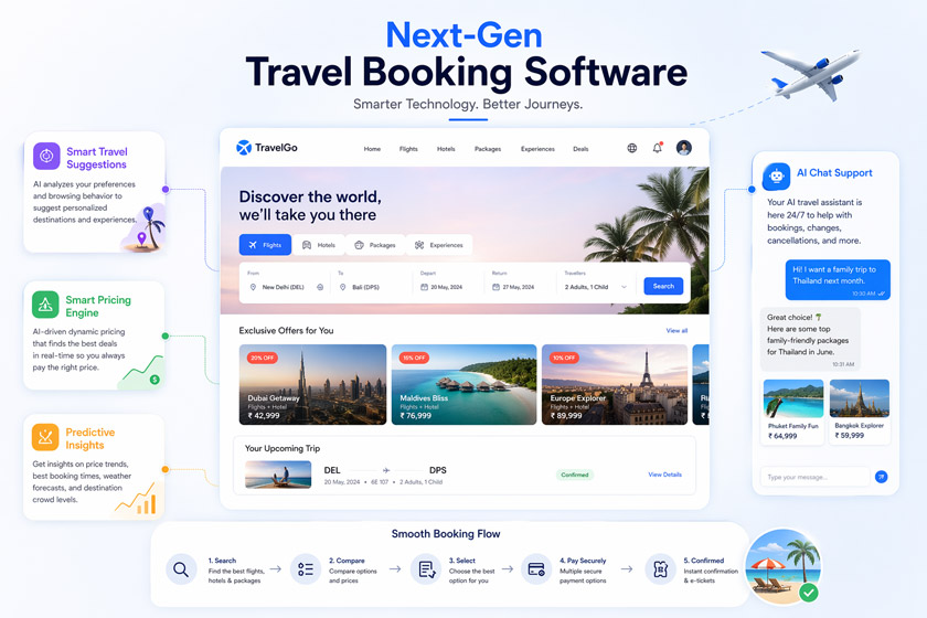 With increasing competition and rising customer expectations, adopting AI-driven travel booking software is becoming essential for businesses to stay relevant and grow efficiently.